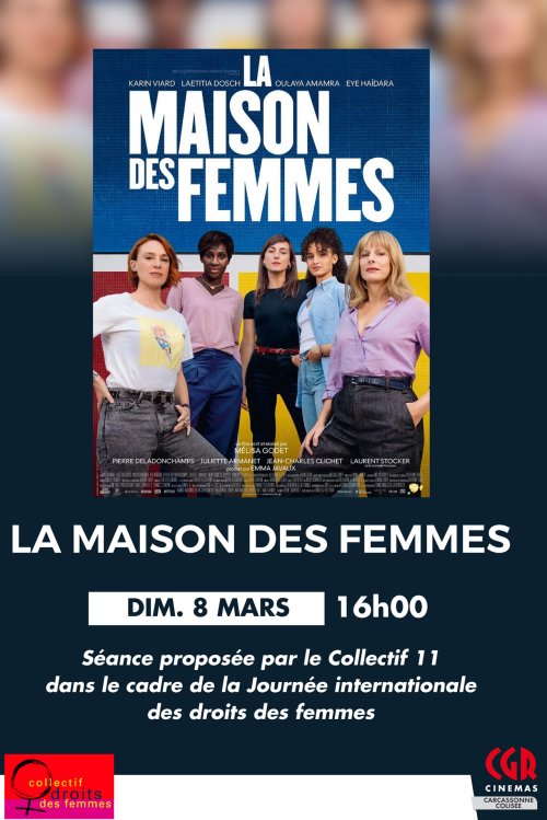 Agenda des manifestations Ciné-débat : La maison des femmes Cinéma Cinéma le Colisée dimanche 8 mars 16h00 Cinéma le Colisée À l'occasion de la journée internationale des droits des femmes, le cinéma le Colisée vous propose en partenariat avec l'association Collectif 11 un ciné-débat sur le film La maison des femmes. Un euro par entrée payée sera reversé à l'association La maison des femmes pour cette séance. Zoom de l'image Payant Votre contact Cinéma le Colisée Boulevard Omer Sarraut www.cgrcinemas.fr/carcassonne-colisee