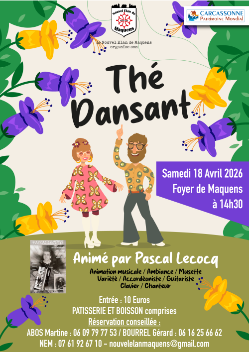 Agenda des manifestations Thé dansant du NEM Autres Foyer de Maquens samedi 18 avril de 14h30 à 18h30 Foyer de Maquens Zoom de l'image Venez danser toute une après-midi au foyer de Maquens. Le thé dansant sera animé par Mr Pascal Lecocq La réservation est fortement conseillée Zoom de l'image Tarif(s) 10€ l'entrée pâtisserie et boisson comprises Votre contact Nouvel élan de Maquens 07 61 92 67 10 Plus d'informations...