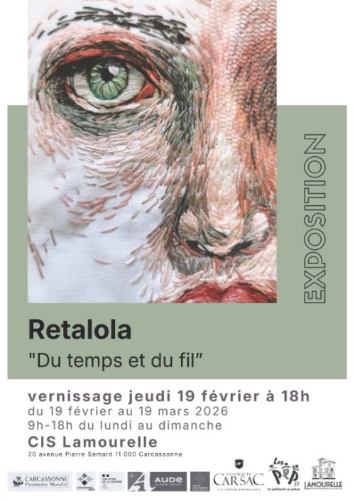 Agenda des manifestations Exposition "Relalola" Exposition Centre International de Séjour Lamourelle Du jeudi 19 février au jeudi 19 mars de 9h à 18h Centre International de Séjour Lamourelle « Les œuvres textiles présentées à la maison Lamourelle, sont réalisées avec la technique dite, de la "peinture à l'aiguille". La matière lumineuse du coton mouliné, est posée par petites touches tels des traits de crayons, révélant des visages à la limite de la peinture. Puis, ma broderie prend de l'épaisseur avec une couche de ouate épaisse, pour être traitée à la manière d'un bas-relief. Après des années d'études d'art à Paris (beaux-arts de Versailles et école de Sèvres), je descends dans le sud pour ne plus en repartir, aiguisant ma pratique grâce à ma galerie d'art à Leucate village où je diffuse mon travail de plasticienne pendant 30 ans. Mes sujets de prédilection sont les rapports entre l'Homme et la Nature. Je propose de dépasser une vision anthropocentriste et d'imaginer un monde de correspondance et d’interdépendance. Habiter un espace isolé en moyenne montagne, renforce mon sentiment de faire partie d'un Tout. » Vernissage le jeudi 19 février 2026, à partir de 18h, avec une dégustation de vin des Vignobles de Carsac. L'exposition "Du temps et du fil" fait partie du cycle culturel nommé "Entrelacer" qui réunit trois expositions d'artistes féminines travaillant autour du fil, du tissu en général et faisant écho au passé industriel de la Maison Lamourelle, propriété d'un chiffonnier. Ce cycle culturel sera étoffé par une conférence menée par Me Christine FEAU le vendredi 27 février à 18h, ou comment les artistes, femmes ou hommes, se sont emparées des travaux d'aiguilles afin de s'émanciper de leurs rôles traditionnels. Zoom de l'image Gratuit