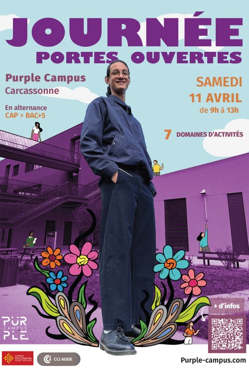 Agenda des manifestations Journée portes ouvertes : Purple Campus Portes ouvertes Enseignement supérieur samedi 11 avril de 9h00 à 13h00 705 Av. Georges Guille, 11000 Carcassonne Cet événement permettra aux personnes intéressées par l’apprentissage de découvrir du Campus et l’ensemble des formations, du CAP au BAC+5. Au programme : Rencontre avec nos équipes et découverte des métiers de nos différentes filières Informations complètes sur l’alternance et les parcours possibles Échanges autour des débouchés et opportunités professionnelles Zoom de l'image