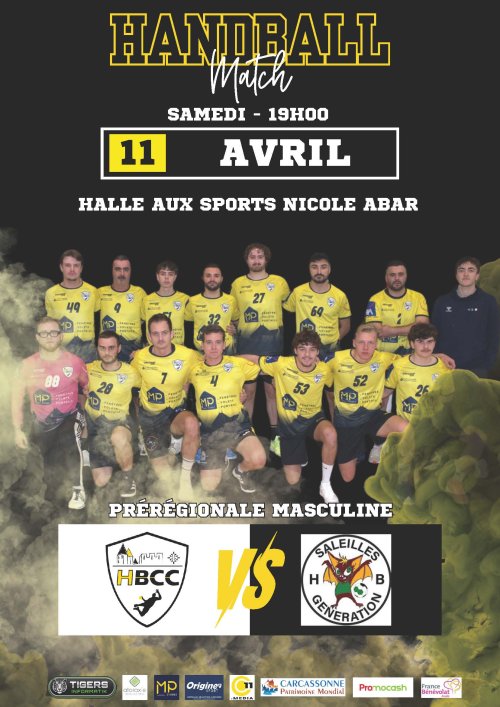 Agenda des manifestations Match de Handball : HBC Carcassonne / Saleilles GHB Sport Halle aux sports Nicole Abar Sport samedi 11 avril 19h00 Halle aux sports Nicole Abar Prérégionale masculine. Venez soutenir votre équipe ! Zoom de l'image Votre contact HBCC - Hand-ball club Carcassonnais 04 68 47 00 77 hbccadmi1@gmail.com www.hbccarcassonnais.com
