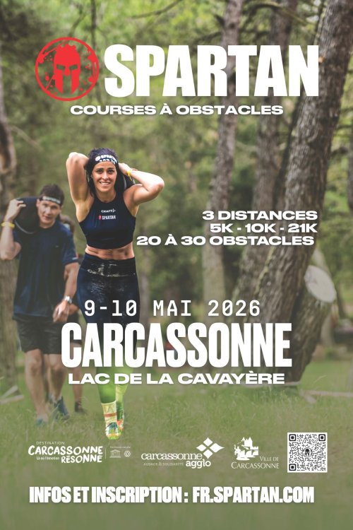 Agenda des manifestations Spartan Courses à obstacles Sport Lac de la Cavayère Sport vendredi 8 mai au dimanche 10 mai Lac de la Cavayère Prépare-toi pour une aventure inoubliable durant l'événement Carcassonne Trifecta Weekend 2026 ! Destination de lancement de saison à succès Spartan revient en 2026, les 8, 9 et 10 mai à Carcassonne, pour une 8ème édition qui poussera sûrement une bonne partie des athlètes à réaliser une TRIFECTA sur le week-end. Cette année, Spartan Carcassonne promet d'être plus intense, plus exaltant et plus mémorable que jamais. Rejoins les milliers de Spartan venus des quatre coins de France et d'Europe pour affronter ensemble les obstacles emblématiques. Que tu sois un athlète chevronné à la recherche d'un nouveau test ou un novice enthousiaste prêt à relever ton premier défi Spartan, cette expérience est faite pour toi. L'aventure t'attend. Inscris toi dès maintenant pour garantir ta place parmi les héros de cette légende moderne. Sur le Web Infos et inscriptions Carcassonne Spartan Weekend 2026 Zoom de l'image