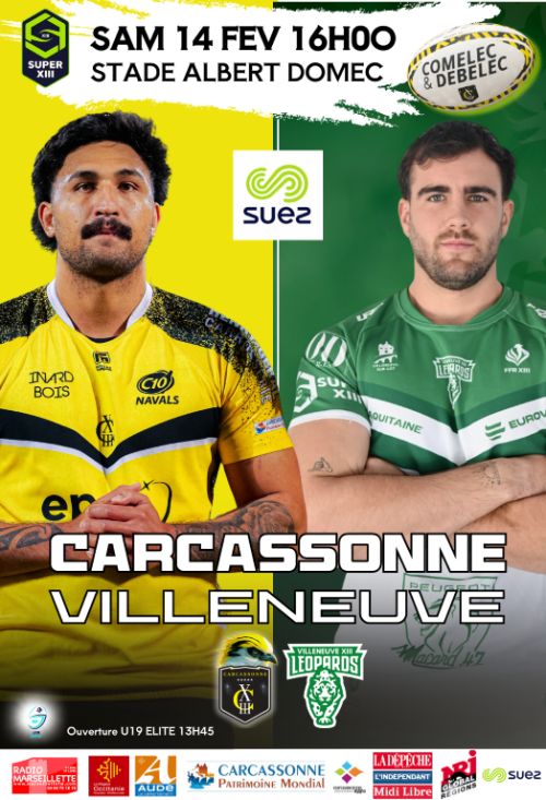 Agenda des manifestations Super XIII : Carcassonne - Villeneuve Sport Stade Albert Domec samedi 14 février 16h00 Stade Albert Domec Venez encourager votre équipe à domicile ! Zoom de l'image Votre contact Carcassonne XIII 04 68 77 59 01 carcassonne-xiii@orange.fr www.carcassonne13.fr