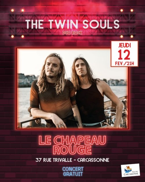 Agenda des manifestations The Twin Souls [Duo Rock] Chapeau Rouge Musique Le Chapeau Rouge jeudi 12 février 21h00 Le Chapeau Rouge Zoom de l'image Depuis 6 ans, The Twin Souls (Martin et Guilhem Marcos) forgent leur réputation en parcourant les routes de France, mais également celles de l’Espagne avec une première tournée de 10 concerts en 2023 et un festival à l’été 2024 dans la péninsule. Ils auront l’occasion d’assurer les 1ères parties de Reignwolf, The Last Internationale, Delgrès à plusieurs reprises, Skip the Use ou encore FFF sur leur récente tournée ! Ils ont été également choyés par Rolling Stone Magazine pour lequel ils tournent une Live Session à l’occasion de la sortie de leur 2ème EP. En bref, 6 années riches d'expériences et de rencontres qui vont déboucher sur leur 1er album en 2025 !Après 2 EP et un LP “Collection” qui sort en Vinyle en 2024 et regroupe leur deux EP et 4 inédits avec des featurings fougueux, le duo délivre cette année 10 titres percutants et mélodieux comme ils savent composer qui donneront naissance à “Highs & Lows”. Sur le Web www.youtube.com/@thetwinsoulsband Zoom de l'image Gratuit dans la limite des places disponibles Votre contact PAC Billetterie Centre de Congrès du Dôme Entrée parking du Dôme Du lundi au jeudi de 10h à 12h30 et de 14h à 17h30 Le vendredi de 10h à 12h30 - Fermé l'après-midi 04 68 11 59 15 pacbilletterie@mairie-carcassonne.fr pac-billetterie.tickandlive.com