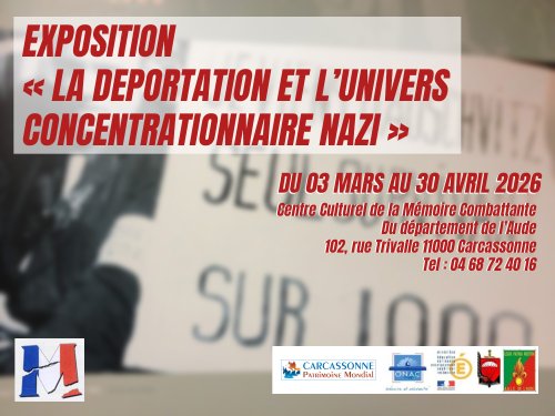 Agenda des manifestations Exposition "La déportation et l’univers concentrationnaire nazi" Exposition Centre Culturel de la Mémoire Combattante mardi 3 mars au jeudi 30 avril Centre Culturel de la Mémoire Combattante Le Centre Culturel de la Mémoire Combattante présente pour mars-avril une nouvelle exposition ayant pour thème : « La déportation et l’univers concentrationnaire nazi » Cette exposition en quinze panneaux revient sur les grandes étapes de la persécution des Juifs en France mais aussi en Europe ; des premières mesures d’exclusion, de l’internement jusqu’à la Déportation systématique et massive ainsi que l’horreur des camps. Zoom de l'image