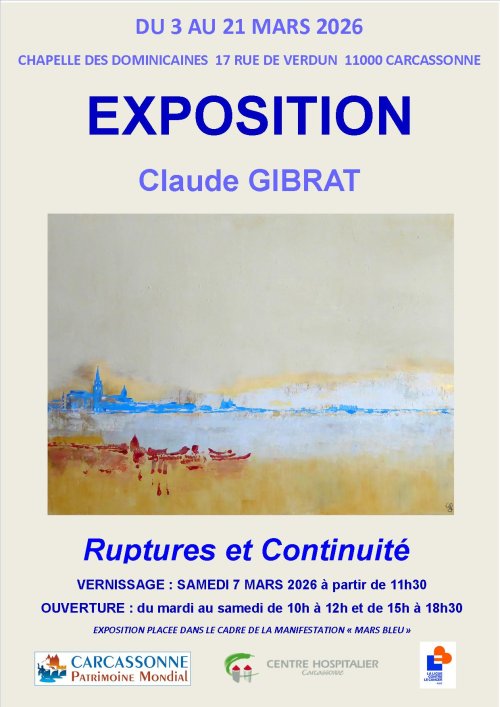 Agenda des manifestations Exposition "Ruptures et Continuité" de Claude Gibrat Exposition Chapelle des Dominicaines Culture mardi 3 mars au samedi 21 mars - 10h à 12h - 15h à 18h30 Chapelle des Dominicaines À l'heure où les trajectoires individuelles se heurtent à la complexité de la vie, les ruptures n'effacent jamais totalement le passé, et chaque continuité porte en elle la promesse d'une réinvention.Ainsi, le fil de la création relie passé et présent et insuffle au geste de l'artiste des formes et des couleurs nouvelles. L'artiste a tracé son "chemin dans la peinture" dans son parcours de vie, à l'intersection de ses incertitudes et des aléas de ce chemin, sensible à la complexité de la réalité et à la fragilité du destin. Son expérience, traversée par le doute, la découverte et l'épreuve, lui permet de présenter dans un espace commun des œuvres où la mémoire dialogue avec l'avenir. Elle expose ici environ 60 tableaux où l’abstraction se confronte à la réalité et où l'allusif domine, à la recherche d'un enracinement. Ils sont réalisés à la peinture acrylique, avec adjonction de pigments, sur structures de type crépi. Par ailleurs, cette exposition participe à la manifestation "Mars Bleu" dédiée au dépistage du cancer colorectal, en relation avec la ligue contre le cancer et le service d'oncologie de l'hôpital de Carcassonne. Ouverture : du mardi au samedi de 10h à 12h et de 15h à 18h30. Vernissage : le samedi 7 mars à partir de 11h30. Zoom de l'image