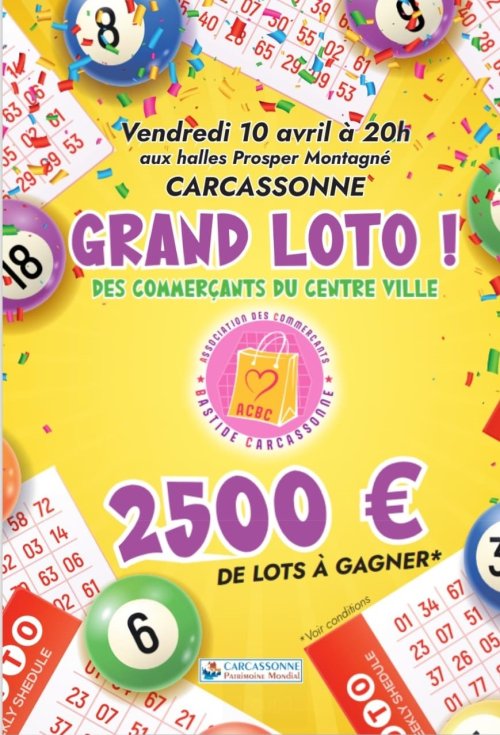 Agenda des manifestations Loto des commerçants du centre ville Attraction - Jeux Halles Prosper Montagné vendredi 10 avril 20h00 Halles Prosper Montagné Nombreux lots à gagner Zoom de l'image Votre contact ACB - Association des commerçants de la Bastide 04 68 25 05 75 carcassonneacb@gmail.com Plus d'informations...