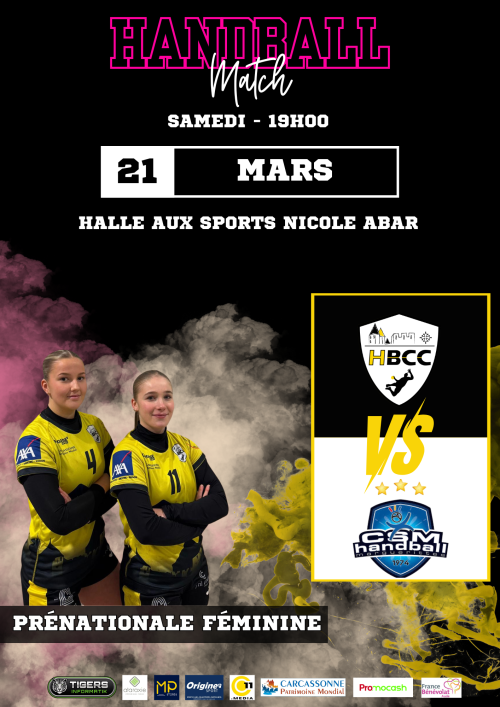 Agenda des manifestations Match de handball : Carcassonne / Marguerittes Sport Halle aux sports Nicole Abar samedi 21 mars 19h00 Halle aux sports Nicole Abar Prénationale féminine HBCC / CSM Handball. Venez soutenir votre équipe ! Zoom de l'image Votre contact HBCC - Hand-ball club Carcassonnais 04 68 47 00 77 hbccadmi1@gmail.com www.hbccarcassonnais.com