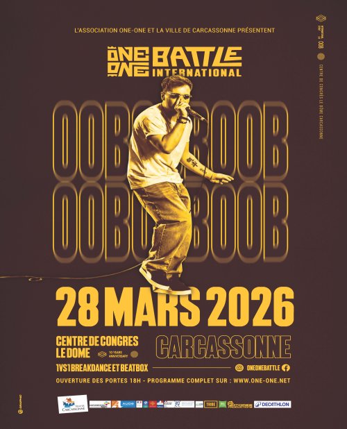 Agenda des manifestations One One Battle Danse Centre de Congrès - Le Dôme Culture samedi 28 mars - ouverture des portes à 18h Centre de Congrès - Le Dôme Le One-one battle met en scène des joutes musicales (Human Beatbox) et chorégraphiques (breaking) sous la forme de battle solo. Durant près de 3h, ce sont les plus grands champions de la planète qui s'affrontent face à face pour tenter de gagner le titre de champion du one-one battle, départagés par un jury de professionnels. Du Japon en passant par le Brésil ou les Etats-Unis, les beatboxeurs et B-boys vous proposent un show à couper le souffle, tout public, pour les passionnés ou les néophytes, les petits comme les grands. En 10 ans, cet évènement est devenu une référence dans le milieu hip-hop et permet chaque année d'accueillir des champions du monde à Carcassonne pour une compétition de très haut niveau. Le beatbox est l'art de créer de la musique sans accessoires ou instruments, uniquement avec la bouche, les cordes vocales, ou le nez. Le Breaking est un style de danse hip-hop qui se pratique surtout au sol, extrêmement physique et acrobatique. Zoom de l'image Tarif(s) - Pré-vente 12€- Sur place 17€- enfant - 6 ans 5€